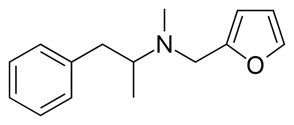 Keywords: Furfenorex.svg made with Inkscape ValidSVG en 2D structure of furfenorex Frugalan Own Harbin 2009-01-15 Amphetamines