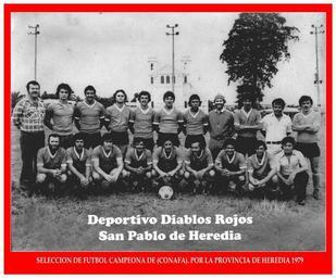 | Keywords: FUTBOL EN SAN PABLO DE HEREDIA.JPG Deportivo Diablos Rojos F C es Deportivo San Pablo F C El combinado participante en aquel año 1979 fue integrado por De pie de izquierda a derecha Andrés Benavidez D T Manuel Salas Sixto Benavidez Jorge Salazar Enrique Jiménez German Moya Feliciano Alvarez Henry Vindas Florencio Rodriguez Victor Arrollo ASIST TEC y German Jiménez De cuclillas de izquierda a derecha Franklin Rodríguez José Vasquez Ademar Vargas German González Jorge Araya Gerardo León Victor Hidalgo y Javier Barquero Algunos de sus jugadores entre otros Rogelio Vindas José Espinoza José Ramírez Willie Campos Marvin Espinoza Carlos Sánchez Gerardo Vindas Jorge Vindas Fernando Badilla Albino Chacón Luis Salazar Mario Sibaja Juan M Hidalgo Jorge Chacón y Simón Villalobos own CONAFA 2002-11-06 RESEÑA HISTÓRICA San Pablo de Heredia El Deportivo Diablos Rojos F C fue un club de fútbol del cantón de San Pablo de Heredia que se fundó en 1979 Desde 1949 los pableños juegan en terceras divisiones y es hasta 1978 que logran conseguir un campeonato distrital Consecuentemente obtienen el pase a la eliminatoria cantonal y de Liga Nacional y Tercera División por CONAFA 2da División de Ascenso Fue Subcampeón de Liga Nacional en 1968 y de tercera en 1972 y 1977 Los juegos más importantes para La Primera División de San Pablo en aquel entonces fueron ante la A D Belén San Rafael Yuba Paniagua San Lorenzo F C Club Deportivo Floreño Deportivo Quesada clubes de Santa Bárbara y Santo Domingo En 1979 San Pablo ostenta una exitosa ronda clasificatoria por la provincia de Heredia donde fue primer lugar del grupo B En esa eliminatoria empatan ante de San Miguel de Santo Domingo 3-3 y le ganan al equipo de San Lorenzo F C por un marcador de 2-1 La final de Tercera División por CONAFA ACOFA se efectuó exactamente el lunes 1 de octubre en el estadio Rosabal Cordero de Heredia Fue un encuentro de infarto ante la A D Fraternidad de Santa Bárbara donde los pableños se imponen 2 por 1 con anotaciones de Florencio Rodríguez y Javier Barquero Así logran su primer éxito futbolístico consiguiendo el ansiado título y coronándose Monarca Nacional de Tercera División Entre 1980 y 1981 llegan nuevas figuras a reforzar al club entre estos José Luis Ramírez Henry Rodríguez Rogelio Vindas José Espinoza José Ramírez Willie Campos Marvin Espinoza Carlos Sánchez Gerardo Vindas Jorge Vindas Fernando Badilla Albino Chacón Luis Salazar Mario Sibaja Juan M Hidalgo Jorge Chacón y Simón Villalobos San Pablo se mantuvo dos años en la liga aficionada Hasta que logran disputar la octagonal final de campeones de tercera Segunda División de Ascenso para subir a la Segunda División contra su similar Club Deportivo Taboga de Guanacaste No obstante los pableños alcanzan un tercer lugar por ACOFA ANAFA a nivel En 1982 San Pablo vuelve a las eliminatorias cantonales buscando un cupo en la tercera división y participar en la Segunda B de ANAFA Asociación Nacional de Fútbol Aficionado Además como aspecto sumamente importante fue el llamado de jugadores sobresalientes del equipo pableño para reforzar clubes de terceras divisiones segundas de ANAFA y la segunda división; entre estos el Deportivo Yuba Paniagua A D Quesada y Clubes de Santa Bárbara de Heredia Group photographs of association football teams in Costa Rica ImageNote 1 141 9 10 10 880 730 2 Deportivo Diablos Rojos F C ImageNoteEnd 1 Santo Domingo Heredia |