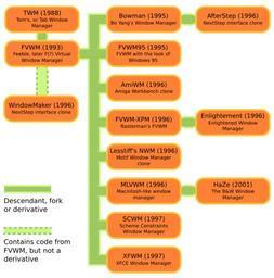 Keywords: Fvwm family.svg The family tree of FVWM Self-made in Inkscape; based on en Image Fvwm family png by en User Taviso 2007-08-18 Mysid FVWM