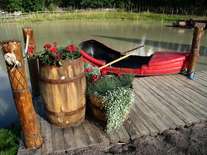 Keywords: götene adventure land boat water park bridge flowers oars barrel