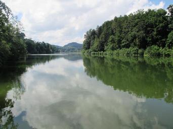 Keywords: gübsensee st gallen lake nature landscape reflect clouds trees background image switzerland