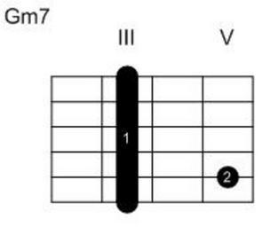 Keywords: G-Moll-7 Barré.jpg Eigenanfertigung 2005-12-01 own assumed Red Rooster Guitar chords in standard tuning