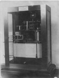 | Keywords: Gábor Kornél Tolnai, Centralograph, Budapest, 1931.jpg en Centralograph own invention by engineer Gábor Kornél Tolnai 1902-1982 Budapest in 1928-1931 This picture shows Tolnai-Teletachograph with diagram paper chart paper At the set-up of the centralograph the machine is in connection with a wiring test terminal box The teletachograph has a pencil which draws the diagram with the holder for the pink On the chart of the teletachograph one can read the downtime of the machine for the shift the shift of the spool how slow and how quickly the machine restarts and how long the first lower speed lasted at startup Even spindle speed can be read the white part represents the actual work chart Unevenness in velocity should not be considered The machine's spindle speed can be 7 000 turns but sometimes it is reduced to 6 000 turns apart from the starting torques sv Centralograf egen uppfinning av ingenjör Gábor Kornél Tolnai 1902-1982 Budapest år 1928-1931 Denna bild visar Tolnai-Teletakograf med diagrampapper Vid uppställningen av centralografen är den i förbindelse med teletakografen samt en kopplingsplint Teletakografen har en penna som ritar diagrammet med bläckhållaren På teletakografens diagram avläser man maskinens stillestånd för skiftningen spolväxlingen hur långsamt respektive hur hastigt maskinen åter satts igång och hur länge den första lägre hastigheten varat vid igångsättningen Även spindelhastigheten kan avläsas varvid den vita delen utgör själva arbetsdiagrammet Ojämnheter i hastigheten bör inte förekomma Maskinens spindelhastighet kan vara 7 000 varv men den går ibland ned till 6 000 varv frånsett startmomenten 1931 Own photo author This image is in the public domain because its copyright has expired other versions Custom license marker 2015 01 16 PD-old Uploaded with UploadWizard Gábor Kornél Tolnai |