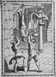 | Keywords: Gallonio Tortures 1591 p04.jpg Woodcut by Tempesta showing a torture/execution scene of martyrs from Gallonio's Tortures and Torments of the Christian Martyrs «Trattato degli instrumenti di martiro e delle varie maniere di martoriare usate da' gentili contro christiani descritti et intagliate in rame; opera di Antonio Gallonio» first publication Rome 1591 / scans from a 1904 reprint woodcut by Antonio Tempesta Reproduction of a painting that is in the public domain because of its age PD-old-100 Trattato degli instrumenti di martiro |