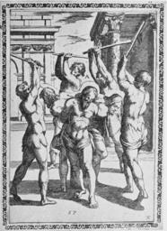| Keywords: Gallonio Tortures 1591 p13.jpg Woodcut by Tempesta showing a torture/execution scene of martyrs from Gallonio's Tortures and Torments of the Christian Martyrs «Trattato degli instrumenti di martiro e delle varie maniere di martoriare usate da' gentili contro christiani descritti et intagliate in rame; opera di Antonio Gallonio» first publication Rome 1591 / scans from a 1904 reprint woodcut by Antonio Tempesta Reproduction of a painting that is in the public domain because of its age PD-old-100 Trattato degli instrumenti di martiro |