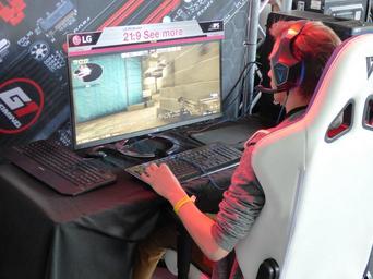 Keywords: game the player headphones computer a computer game playing monitor shooting viewfinder weapon