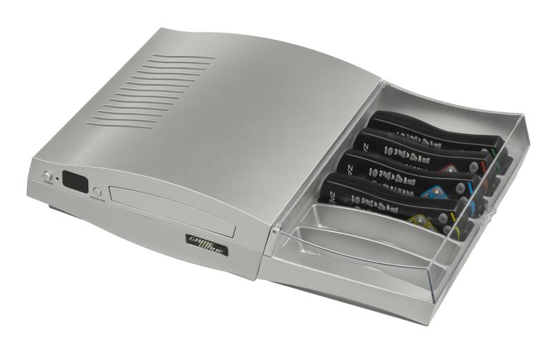 | Keywords: Game-Wave-Console-wControllers-FL.jpg The Game Wave a video game/home entertainment console released in 2005 shown with its remote control holder The system is largely a DVD player where games are played through interactive menues and pre-rendered videos The Game Wave plays a variety of in-home multiplayer titles focusing on trivia that comes with multiple remote controls for each player to select their answers Four remotes come with the system and up to six players can play at once with two additional remotes own 2016-03-29 Evan-Amos User Evan-Amos/EABanner Electronic devices on white background Taken with Nikon D7000 Evan-Amos Video game platforms |