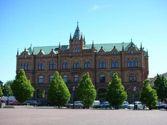 Keywords: Gamla sparbanken Varberg.jpg sv Gamla Sparbankshuset i Varberg own Maukie 2009-05-25 57 6 18 98 N 12 15 2 02 E region SE Varbergs Sparbanks byggnad 2009 in Varberg Photographs by Wolfgangus Mozart May 2009 in Sweden