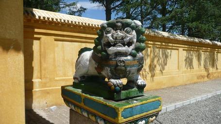 Keywords: Gandan Monastery 05.JPG en Gandan Monastery in Ulan Bator own Brücke-Osteuropa 2009-06-24 Gandan Monastery Statues in Mongolia Statues of lions