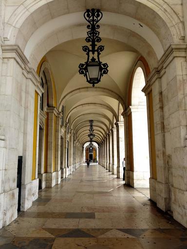 Keywords: gang lisbon building gallery portugal lamp ground tile marble perspective historically arch stone stone floor pattern