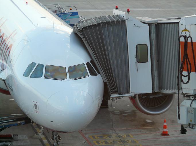 Keywords: gangway access bridge access stairs passenger stairs aircraft airport entry cockpit pilots increased to frontal front front view nose hull aviation holiday travel