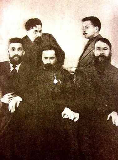 Keywords: Gapon i rabochiye1.jpg ru Гео гий Гапон с г уппой абочих накануне 9-го янва я 1905 г Сидят Иноземцев Гапон Филиппов Стоят Янов и Климов Из книги В Джанибекяна Гапон Революционе в ясе 2006 Author 1905-01-08 George Gapon PD-old