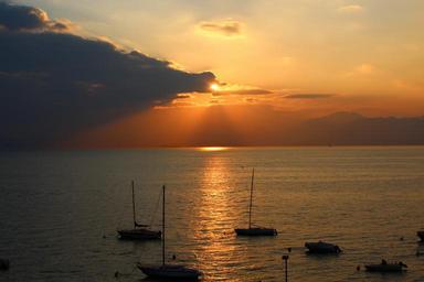 Keywords: garda clouds sun sailing boats abendstimmung sunset water mood romance mirroring lake dusk lichtspiel