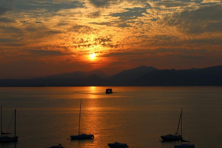 Keywords: garda sunset evening mood lake abendstimmung romance ferry holiday water clouds evening sky sun sky sailing boats nature