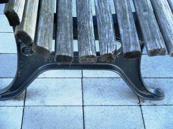 Keywords: garden bench wood feet cast iron battens structure seat dry wood