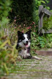Keywords: garden border collie british sheepdog nice weather sun dog basks dog and garden portrait