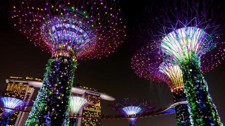 Keywords: garden by the bay singapore night lighting landmark supertree attraction colorful marina park arts modern lights asia trees structure futuristic