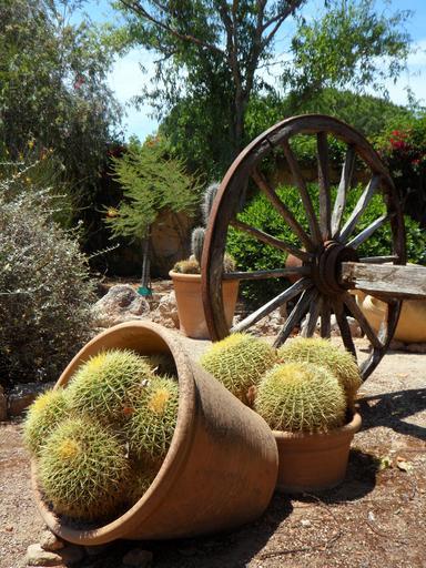Keywords: garden cactus picturesque wooden wheel wagon wheel decorative wheel flower pots mediterranean