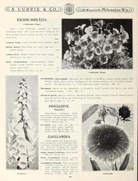 | Keywords: Garden and farm seeds (16346757266).jpg «£lC- r <br> A C U RRIE CO TO UBM; 4 t30 Wisconsin St Milwauk ee WJS 5fi <br> ESCHSCHOLTZIA <br> California Poppy <br> Showy free flowering- annuals of dwarf <br> spreading' habit The seed should be sown in the <br> open ground where wanted as they do not trans- <br> plant well <br> Pkt <br> Carmine King- ” Color beautiful rose-carmine 0 05 <br> Dainty Queen ” Pale pink the outer edg-e of a <br> deeper shade <br> Golden West ” Bright yellow with deep orange <br> blotches at the base <br> nush Eselisoliolt/ ia Hunnemannia ” Bears <br> bright yellow flowers freely on bushes <br> about 2 feet high <br> Finest Mixed all colors oz 20c <br> 05 <br> 05 <br> 05 <br> 05 <br> California Poppy <br> EUPHORBIA Heterophil Mexican Fire Plant ” A striking annual foliage plant with <br> smooth glossy green leaves changing as the season advances to a beautiful orange- <br> scarlet The plants grow 3 to 4 feet high with many branches Pkt 10c <br> Mnrginata Snow on the Mountain ” A beautiful hardy annual with green and white <br> variegated foliage 2 feet Pkt 5c <br> POUR O'CLOCK Marvel of Peru ” Showing annuals with brilliant fragrant flowers which <br> open during the afternoon withering the next morning <br> Fine Mixed pkt 5c; oz 10c <br> foxglov <br> FOXGLOVE <br> Digitalis <br> Remarkably handsome hardy <br> perennials bearing beautifully mot- <br> tled thimble-shaped flowers in great <br> abundance on tall upright stems <br> Finest Mixed pkt 5c <br> FUCHSIA ” The seed we offer is <br> saved from choice varieties <br> Single Fine Mixed pkt 15c <br> Double Fine Mixed pkt 15c <br> GAILLARDIA <br> Useful plants for beds and bor- <br> ders producing their handsome flow- <br> ers freely throughout the entire sea- <br> son They are excellent for cutting <br> keeping fresh a long time in water <br> Single Annual Varieties finest mixed <br> Pkt 5c; oz 15c <br> Picta l orenziana ” Double annual <br> varieties finest mixed Pkt 5c <br> Grandlflora Hybriila ” New perennial <br> varieties bearing profusely <br> large brilliant colored flowers <br> with beautiful maroon and or- <br> ange markings from June to <br> October 2 feet Pkt 10c <br> tialllarilia <br> 42156508 132761 65916 Page 56 Text http //www biodiversitylibrary org/page/42156508 1912 10 5962/bhl title 65916 A Currie Company ; Henry G Gilbert Nursery and Seed Trade Catalog Collection NameFound Eschscholtzia NameConfirmed Eschscholtzia EOLID 2886433 NameBankID 2560248 NameFound Euphorbia NameConfirmed Euphorbia succulent spp EOLID 20197 NameFound Gaillardia NameConfirmed Gaillardia Foug EOLID 38325 NameFound Hunnemannia NameConfirmed Hunnemannia Sweet EOLID 72891 NameFound Hybriila NameFound Picta NameConfirmed Picta NameBankID 5100567 Biodiversity Heritage Library Garden and farm seeds spring 1912 Garden Stories Bulbs Plants Catalogs Equipment and supplies Flowers Gardening Nurseries Horticulture Plants Ornamental Seeds Vegetables U S Department of Agriculture National Agricultural Library bhl page 42156508 dc identifier http //biodiversitylibrary org/page/42156508 bhlGardenStories BHLinbloom bulbs plants nurseries horticulture plants ornamental u s department of agriculture national agricultural library bhlgardenstories bhlinbloom Information field Flickr posted date ISOdate 2015-01-26 Check categories 2015 August 25 CC-BY-2 0 BioDivLibrary https //flickr com/photos/61021753 N02/16346757266 2015-08-25 06 53 30 cc-by-2 0 PD-old-70-1923 Garden and farm seeds 1912 Photos uploaded from Flickr by Fæ using a script |