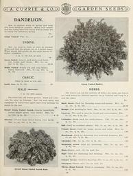 | Keywords: Garden and farm seeds (16370928191).jpg A CURRIE COM <br> RIE <br> GARDEN SEEDSffi <br> DANDELION <br> Sow in shallow drills in spring and keep <br> free from weeds in summer Mulch over winter <br> and the young blanched leaves will be ready for <br> use early the following spring <br> Oz <br> Large Leaved Pkt 5c 40 <br> ENDIVE <br> Sow the seed in June or July In shallow <br> drills and thin the plants out to 6 inches apart <br> When nearly full grown tie the outer leaves to- <br> gether to blanch <br> 1 oz to 300 feet of drill <br> Lb <br> Green Curled Leaves dark green and finely <br> cut tender and hardy Pkt 5c; oz <br> 15c; yÂą lb 35c 1 00 <br> White Curled Finely cut and very tender <br> easily blanched Pkt 5c; oz 15c; <br> lb 35c 1 00 <br> GARLIC <br> Plant in rows in rich soil <br> Garlic Sets lb 15c <br> 35 <br> KALE Borecole <br> 1 oz for 2000 plants <br> Excellent fall and winter greens Grow and culti- <br> vate the same as Cabbage Sow the seed early and <br> transplant in rows 3 feet apart and 2 feet between the <br> plants in the row <br> Lb <br> Dwarf Green Curled Scotch Leaves beautifully <br> curled bright green very tender Pkt 5c; <br> oz 10c; lb 20c 65 <br> Siberian Dwarf large broad leaves very hardy <br> Pkt 5c; oz 10c; lb 20c 60 <br> Dwarf Green Curled Scotch Kale <br> Ji <br> Green Curled Endive <br> ˘ HERBS <br> For winter use cut the varieties of which the stems and leaves <br> are used before the blossom appears tie in bunches and hang in a <br> cool dry place <br> Lb <br> Basil Sweet Used for flavoring soups and sauces Pkt 5c; <br> oz 15c; Vi lb 50c 1 50 <br> Borage For flavoring or bees Pkt 5c; oz 15c; lb 40c 1 25 <br> Caraway The seed is used for bread and confectionery Pkt <br> 5c; oz 10c; Vi lb 25c 75 <br> Coriander Seeds used for confectionery Pkt 5c; oz 10c; <br> M lb 25c 75 <br> Dill Used in cucumber pickles Pkt 5c; oz 10c; lb 20c 60 <br> Fennel Sweet Used for soups sauces and salad Pkt 5c; <br> oz 10c; Vi lb 30c 1 00 <br> Horehound Used for seasoning and medicinal purposes Pkt <br> 5c; oz 20c; lb 60c 2 25 <br> Lavender Pkt 5c; oz 15c; lb 35c 1 25 <br> Marjoram Sweet Used for seasoning Pkt 5c; oz 20c; <br> Yi lb 50c 1 75 <br> Mint Plants each 15c; by mail 25c <br> Sage Used for seasoning and dressing Pkt 5c; oz 15c; <br> M lb 50c 1 50 <br> Summer Savory Used for flavoring Pkt 5c; oz 10c; y 4 lb 25c 75 <br> Tarragon Plants each 15c; by mail 25c <br> Thyme Broad Leaved Used for seasoning Pkt 5c; oz 25c; <br> lb 85c 3 00 <br> 13 42156465 132761 65916 Page 13 Text http //www biodiversitylibrary org/page/42156465 1912 10 5962/bhl title 65916 A Currie Company ; Henry G Gilbert Nursery and Seed Trade Catalog Collection Biodiversity Heritage Library Garden and farm seeds spring 1912 Garden Stories Bulbs Plants Catalogs Equipment and supplies Flowers Gardening Nurseries Horticulture Plants Ornamental Seeds Vegetables U S Department of Agriculture National Agricultural Library bhl page 42156465 dc identifier http //biodiversitylibrary org/page/42156465 bhlGardenStories BHLinbloom bulbs plants nurseries horticulture plants ornamental u s department of agriculture national agricultural library bhlgardenstories bhlinbloom Information field Flickr posted date ISOdate 2015-01-26 Check categories 2015 August 25 CC-BY-2 0 BioDivLibrary https //flickr com/photos/61021753 N02/16370928191 2015-08-25 06 50 59 cc-by-2 0 PD-old-70-1923 Garden and farm seeds 1912 Photos uploaded from Flickr by FĂŚ using a script |