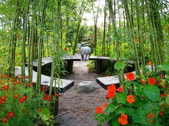 Keywords: garden figure animals summer green flowers stenbrohult carl von linen benches boards