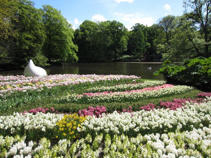 Keywords: garden flowers floral arrangement lake spring blossom bloom gardening landscape peaceful botanical