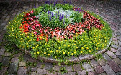 Keywords: garden flowers plant outdoor flora floral botany bloom circle round cobblestone