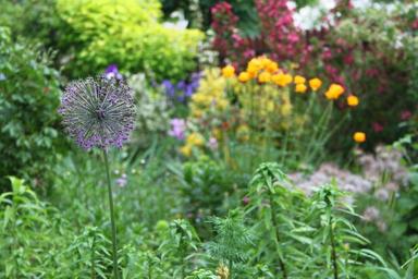 Keywords: garden flowers spring garlic violet yellow nature plant