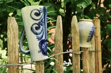 Keywords: garden garden fence ceramic earthenware painted traditionally pots fence garden decoration wood fence limit romantic