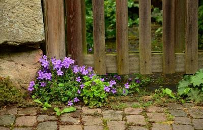 Keywords: garden garden fence fence paling wood fence wood summer bloom patch purple flower romantic idyll idyllic roadside away wallflower