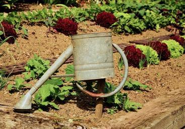 Keywords: garden gardening plant casting salad watering can irrigation gardener still life vegetarian water earth eat bed food harvest brown green bio crop