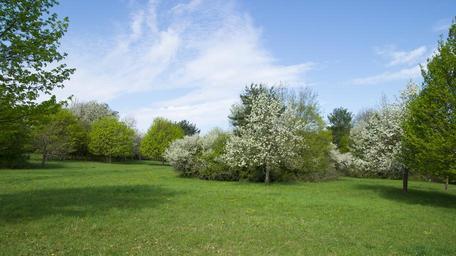 Keywords: garden meadow plant tree idyll spring flowers grass sky blue nice weather flora
