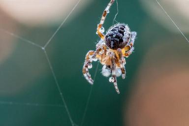 Keywords: garden spider araneus diadematus spider cobweb spider macro close animal spider webs floating safety net network insect hairy araneus arachnid drip drop of water