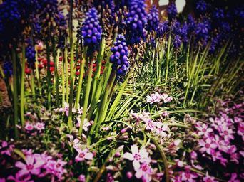 Keywords: garden spring flowers color colorful bloom nature blossom bloom flora flower bed purple pink green