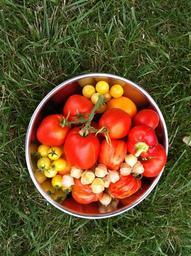 Keywords: garden vegetables tomato peppers bowl healthy summer outdoors
