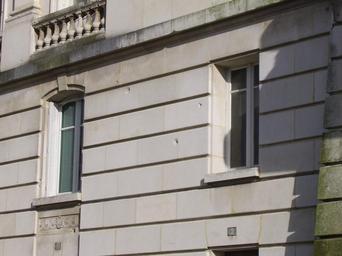 Keywords: Gare balles All.jpg Impact des balles tirées par les Allemands lors de la seconde guerre mondiale au pied du campanile de la gare des Bénédictins de Limoges place Maison-Dieu 2006-12-07 own assumed Babsy Exterior of gare de Limoges-Bénédictins