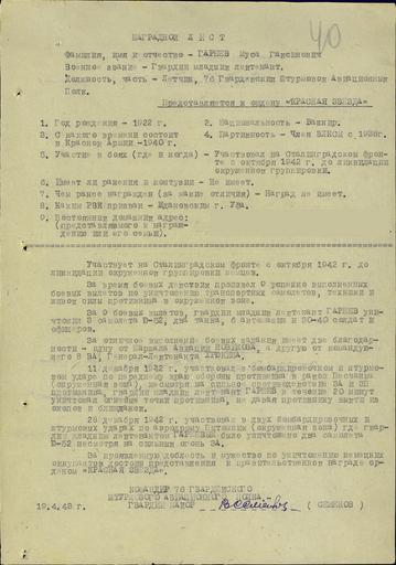 | Keywords: Gareev.jpg  en award list of Musa Gareev ru  аг адной лист  усы Га еева 2012-03-07 http //podvignaroda ru  инисте ство обо оны Российской Феде ации PD-old Uploaded with UploadWizard Documents from the Central Archive of the Russian Ministry of Defence |