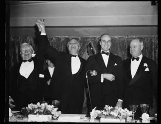 | Keywords: Garner-Roosevelt-Roosevelt-Farley.jpg en Big Shots Washington D C February 15 Jim Farley's Testimonial Dinner Held Tonight At The Mayflower Brought The 'Tops' Of Washington's Government Leaders L To R Vice President Jack Garner President Roosevelt James Roosevelt and Jim Farley No known restrictions on publication Gift; Harris Ewing Inc 1955 1937-02-15 http //lcweb2 loc gov/service/pnp/hec/47200/47295v jpg Library of Congress Harris Ewing PD-Harris-Ewing Uploaded with UploadWizard James Roosevelt Franklin Delano Roosevelt in 1937 Franklin Delano Roosevelt standing after 1921 |