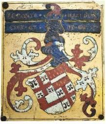 | Keywords: GarterPlateHenryBourchier2ndEarlOfEssex.png en Garter stall-plate of Henry Bourchier 2nd Earl of Essex 3rd Count of Eu 1468-1540 nominated as a Knight of the Garter in 1499 St George's Chapel Windsor Castle Inscribed above Le Conte Henri de Esex et de Ew Arms 1st 4th Bourchier; 2nd Louvain feudal barons of Little Easton Essex for the mother of the 1st Count of Eu Eleanor de Louvain d 1397 Gules billety or a fess argent; 4th Crest A man's moor's head in profile proper ducally crowned or with a pointed cap gules;<ref>Vivian Heralds' Visitations of Devon 1895 p 106</ref> http //www royalcollection org uk/microsites/knightsofthegarter/MicroObject asp row 13 themeid 455 item 14 Artist unknown Uploaded by Lobsterthermidor <span class signature-talk >talk</span> 12 38 21 November 2013 UTC circa 1499 Nominated to KG 1499 PD-old-100 Stall plates of Knights of the Garter Bourchier arms Bourchier garter plates Louvain arms Woodville arms |