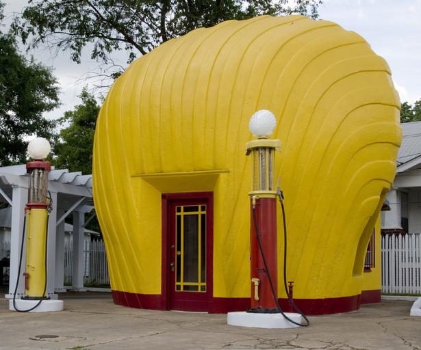Keywords: gasoline station shell fuel petrol automobile service retro vintage road pump colorful auto car vehicle