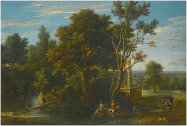 | Keywords: Gaspar de Witte - A Landscape with Travellers Stopping to Rest by a River.jpg Artwork creator Gaspar de Witte en A Landscape with Travellers Stopping to Rest by a River 1681 http //www sothebys com/en/auctions/ecatalogue/lot 342 lotnum html/2012/old-master-british-paintings-day-sale-l12037 Oil canvas cm 65 5 94 5 Sold at Sotheby's on 6 December 2012 in London lot 342 signed and dated centre right on the base of the obelisk ANo / D / LXXXI / GASPAR/ DE / WITTE F PD-old-100 Gaspar de Witte 17th-century landscape paintings Baroque paintings of landscapes Oil paintings of landscapes |