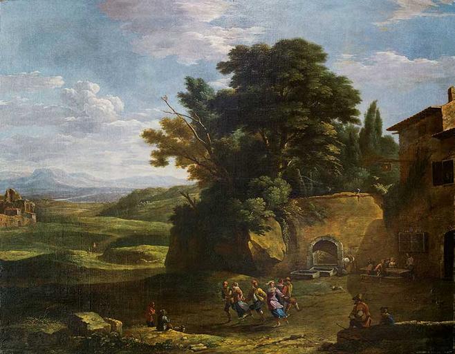 | Keywords: Gaspar de Witte - Landscape with Roman saltarello.jpg Artwork creator Gaspar de Witte en Landscape with Roman saltarello 1646-1681 http //www minervaauctions com/rome-auction asp all all dir Next x 9 auction Asta106 lotto artista titolo descrizione prezzo Oil canvas cm 135 170 Sold at Minerva Auctions on 23 November 2014 in Rome lot 99 signed lower left 'GASPAR/DE/WITTE' PD-old-100 Gaspar de Witte 17th-century landscape paintings Baroque paintings of landscapes Paintings of outdoor dances |