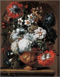 | Keywords: Gaspar Pieter Verbruggen the Elder - Vase of Flowers in a Niche.jpg Artwork creator Gaspar Peeter Verbruggen I en Vase of Flowers in a Niche between 1645 1681 http //www pinturaflamenca com Oil canvas cm 46 7 57 5 private collection Hans Rudolf Gerstenmaier Madrid PD-old-100 Other versions Gaspar Peeter Verbruggen II 17th-century still life paintings of flowers Collection Gerstenmaier | ||||