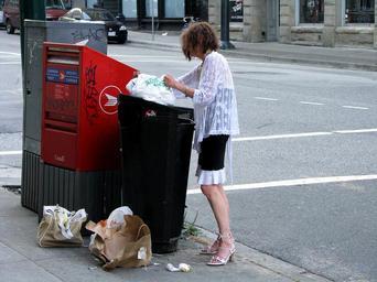 | Keywords: Gastown Recycler at Work.jpg en A poor woman going through the garbage in search of anything valuable Seen in the Gastown tourist area of the ghetto downtown eastside area in Vancouver BC Canada Own Name invalid 2008-07-21 Vancouver BC Canada Poverty in Vancouver Post boxes in Canada Graffiti in Vancouver Recycling |