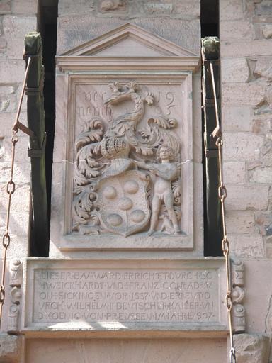 Keywords: Gate to the bastion (Haut-Koenigsbourg) 2.jpg en Relief at the top of the gate to the grand bastion from the upper garden of the castle of Haut-Koenigsbourg Bas-Rhin France With the coat of arms of the Sickingen family fr Bas-relief au dessus de la porte d'accès au grand bastion à partir du jardin supérieur du château du Haut-Koenigsbourg Avec le blason de la famille Sickingen own Tangopaso 2011-08-22 12 57 20 thumb left Overview 48 249351 7 343239 region FR_heading W fr PA00084875 Upper garden of the Haut-Koenigsbourg castle Reliefs of coats of arms in Bas-Rhin Haut-Koenigsbourg Photographs of coats of arms from France Haut-Koenigsbourg Reliefs on Château du Haut-Koenigsbourg Coats of arms of Sickingen family Haut-Koenigsbourg Plaques referencing 1905 Sandstone reliefs in Bas-Rhin Haut-Koenigsbourg 20th-century sandstone reliefs in Alsace Haut-Koenigsbourg |