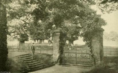 Keywords: Gates Lamport Hall 1898.jpg en Sir Charles Isham near the gates at Lamport Hall in 1898 Country Life Illustrated London April 30 1898; pg 518 author 1898 PD-old Lamport Hall Northamptonshire