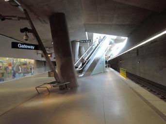 | Keywords: Gateway T platform & escalator jeh.jpg en Gateway station platform 2013-05-20 13 37 59 own Jim henderson 40 26 32 4 N 80 0 15 3 W heading SSE cc-zero Uploaded with UploadWizard Gateway PAT station Train station escalators in the United States |