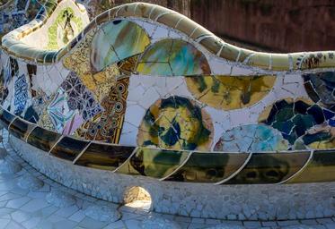 Keywords: gaudi guell park architecture barcelona spain europe landmark artistic museum ceramic famous design mosaic colorful park-guell outdoor bench structure catalonia
