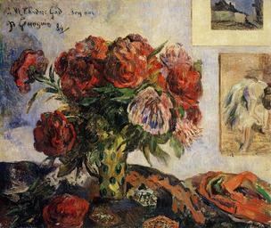 | Keywords: Gauguin Les Pivoines I.jpg Artwork Creator Paul Gauguin Gerro de peònies I Still Life with Peonies Les Pivoines I 1884 oil on canvas cm 59 7 73 institution National Gallery of Art Not on view accession number 1995 47 10 object history credit line Collection of Mr and Mrs Paul Mellon exhibition history à M Théodore Gad son ami / P Gauguin 84 ~ upper left signature / date https //www pubhist com/w27213 PubHist http //www nga gov/content/ngaweb/Collection/art-object-page 93046 html National Gallery of Art Washington D C online collection Gauguin catalogues 131 145 18 Q20189713 PD-old-100-1923 DEFAULTSORT Gauguin; Still-life 1884; NGA Paintings by Paul Gauguin in the National Gallery of Art 1880s paintings by Paul Gauguin 1884 Still-life NGA 19th-century still life paintings of flowers Still life paintings by Paul Gauguin Paintings of peonies 1884 paintings ImageNote 1 651 156 148 301 800 674 2 thumb Danseuse assise Edgar Degas ImageNoteEnd 1 ImageNote 2 11 8 278 87 800 674 2 à M Théodore Gad son ami<br /> P Gauguin 84 ImageNoteEnd 2 |