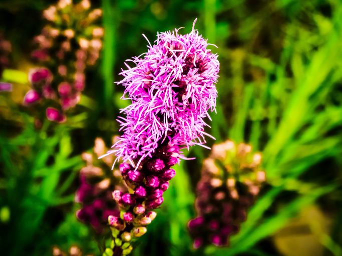 Keywords: gayfeather liatris north american flower bloom from top down purple line flower blue wild nature blazing star cluster plant meadow
